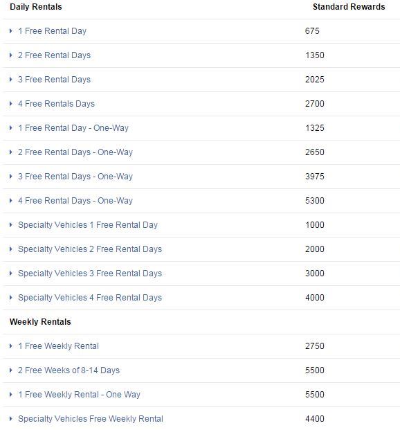 Let’s assume you get one of the packages that sells the points at 4.24 cents – that means a rental day cost around $28.62 while a weekly rental costs only $116.60 by buying points today. A specialty vehicle weekly rental (which is defined as minivans, convertibles and certain SUVs) costs $186.56. A three day weekend rental would cost only $69.96.